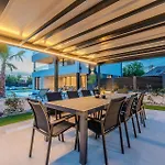 Cozinha totalmente equipada está bem equipada, incluindo refrigerador, forno e utensílios de cozinha. Esta propriedade de Privlaka tem terraço para relaxar após um dia agitado, juntamente com piscina privada.
